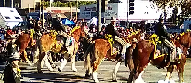 I WONDER if some of the sheriff deputies on Rose Parade day are reserves or volunteers ? This looks impressive but basically they are "sitting ducks" if somebody had the wrong intentions, God forbid.